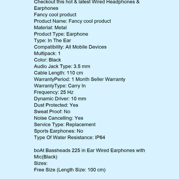 boAt Bassheads 225 in Ear Wired Earphones with Mic(Black)