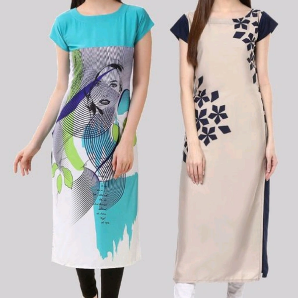 Women Crepe Printed Long Kurti (Combo Of 2)